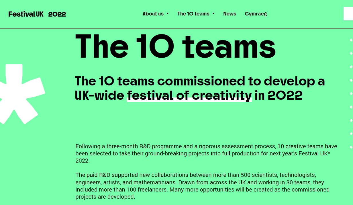 There are lots of discussions we could have about a £120m series of creative and cultural events planned to take place around the United Kingdom in 2022.