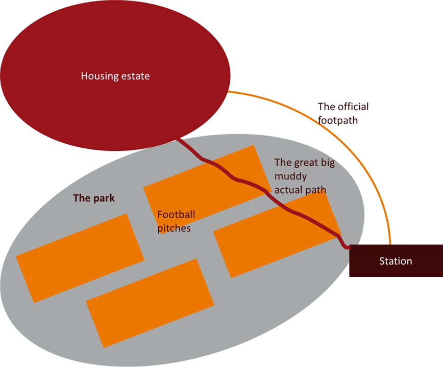 It quickly became clear, however, that the ‘desire path’ for the commuters to the station was directly across two of the pitches, carving out unpleasant ruts.