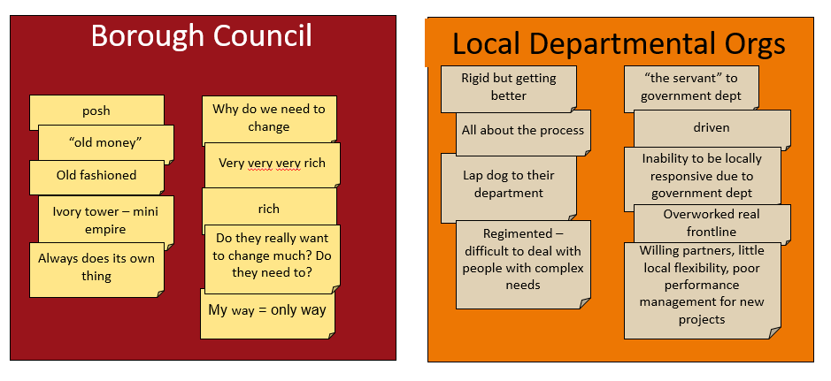 It became clear that the organisations were extremely different, and that they held some really big preconceived ideas about each other – but nobody was willing to discuss it.