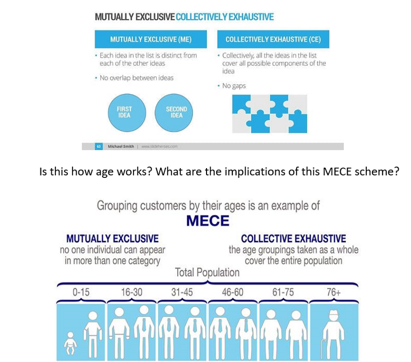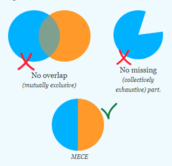 McKinsey, one of the older consultancies in the world, and amongst the best paid, use the schema ‘Mutually Exclusive and Collectively Exhaustive’ — MECE.