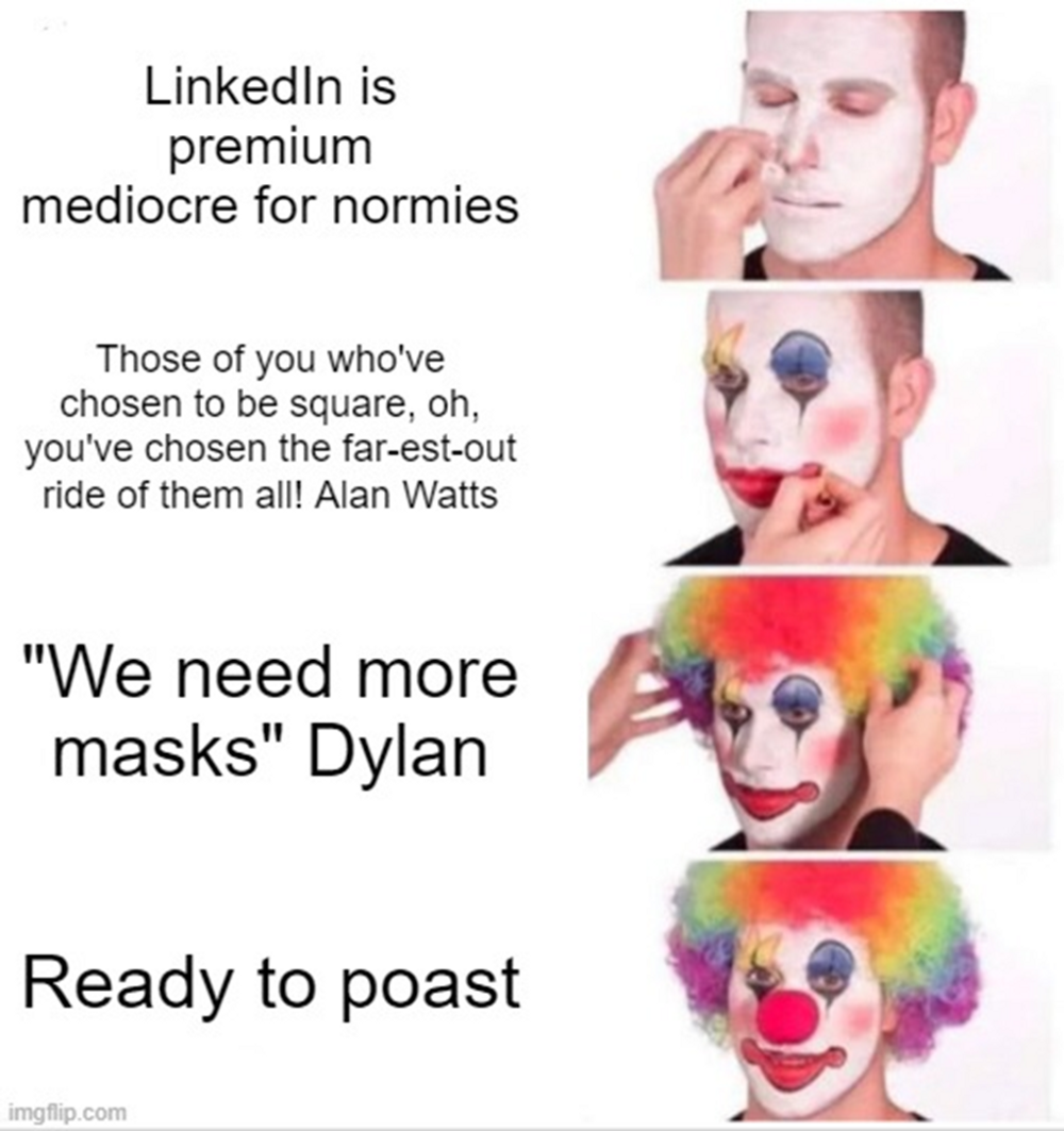 “Little did I know LinkedIn earnestposting is secretly the epitome of of pure shitposting”, he said.
