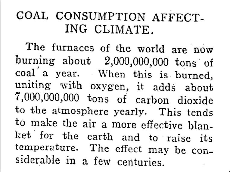 As early as the 1820s it was theorised that the earth’s temperature might be regulated by the atmosphere. This was proved forty years later, and a famous 1912 article raised the issue of climate change.