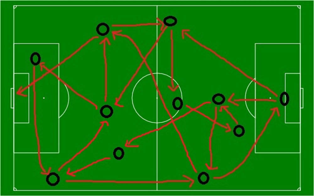 A completely integrated, fluid team. Every player plays in every position. A beautiful pattern of adaptation and agility — the team itself is the active intelligence on the pitch, not the individuals.