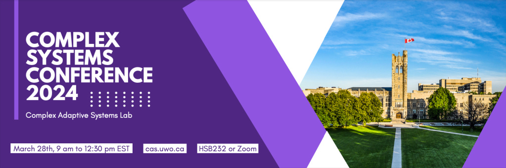 - Thursday, March 28, 2024, 9:00 AM – 12:30 PM ESTAttend in-person at Arthur and Sonia Labatt Health Sciences Building (1151 Huron Dr), Room 232, Western University (Canada)Attend virtually via Zoom WebinarHosted by the Complex Adaptive Systems (CAS) Lab at Western UniversityQuestions? Contact planning team at wcsc@groups.uwo.ca