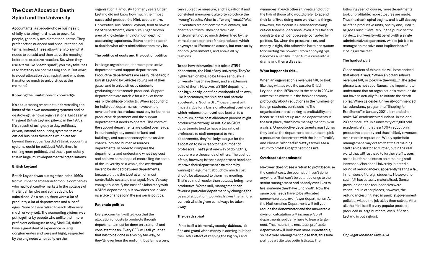 Jonathan Mills on Twitter: “The University and the Cost Allocation Death Spiral… https://twitter.com/Muinchille/status/1770766529648365815 and