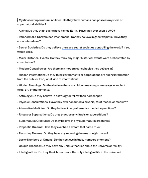 Dan uses ‘the batsh*t list’ (the word is a compliment in his world) to test how many beliefs on the list guests hold.