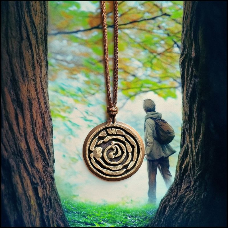 The shaman, true to his calling, journeyed to the spirits to ask for protection. The next morning, walking to work across the park, there was an amulet. Just hanging there, from a leather strip, on a tree, glinting slightly. It was clearly for protection.