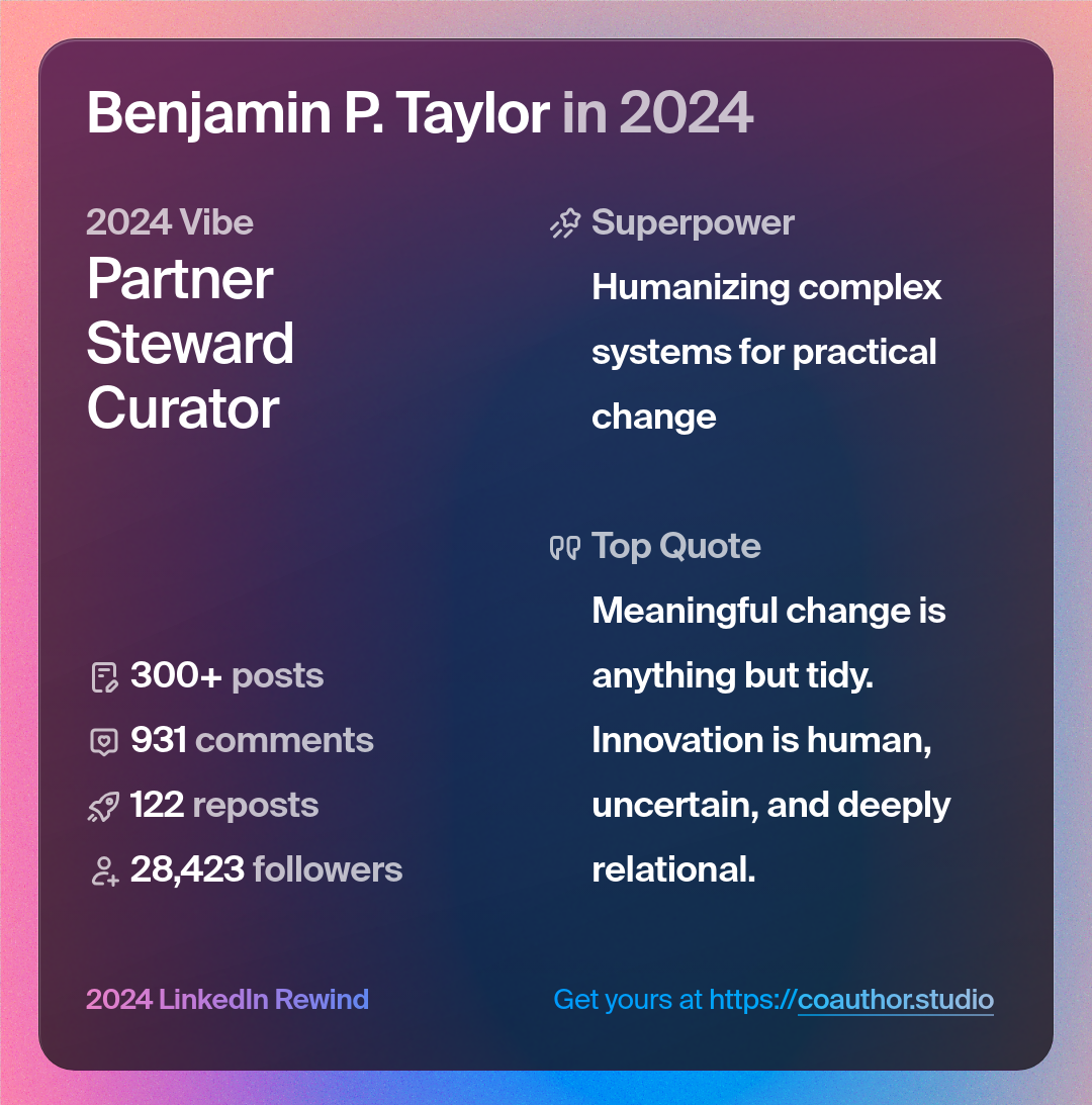 I wish ‘AI’ (LLMs) were better at insight. At the moment, is is quite good at stating the obvious. The limits of course are lack of embodiment, cross-platform access, walled gardens hiding information. If you ask an LLM for an overview of your social media activity, do you get an accurate mirror? https://www.linkedin.com/posts/antlerboy_governance-systemsthinking-transformation-activity-7284850200551030784-ZXpS/