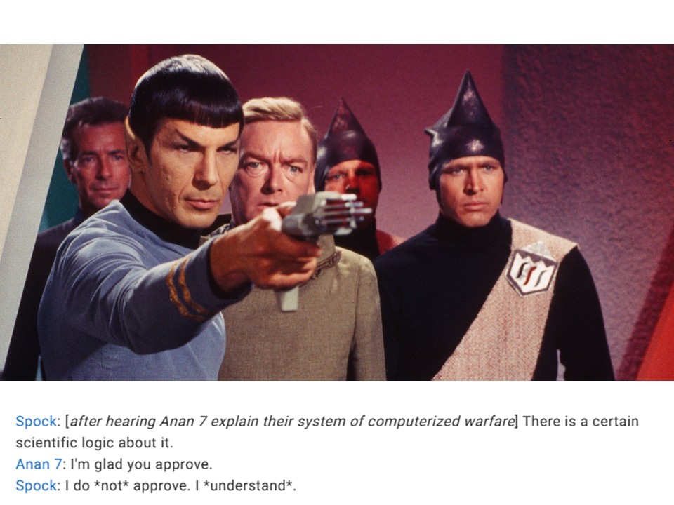 In the Star Trek episode A Taste of Armageddon, two planets wage a 500-year war through computer simulations. Citizens report for execution to meet calculated death tolls. No destruction, mess, disruption. They sanitised war and removed any real incentive for peace. Kirk sees through the illusion and destroys the simulation, forcing the reality of war – and opening the path to negotiation.