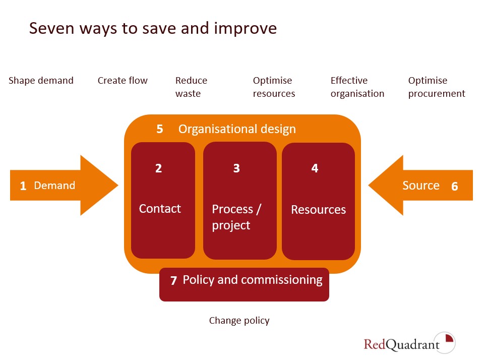 At a recent iNetwork session, I shared our ‘seven ways to save and improve’. It’s a simple model – demand, contact, process, resources, organisation, sourcing, policy – but it unlocks complex insights. Too many savings efforts target the middle (procurement, process improvement, digital) without looking upstream (shaping demand, creating flow) or downstream (interoperability, organisational alignment).